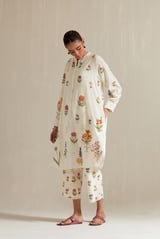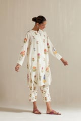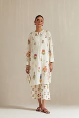 Off White Cotton Short Kurta With Pant