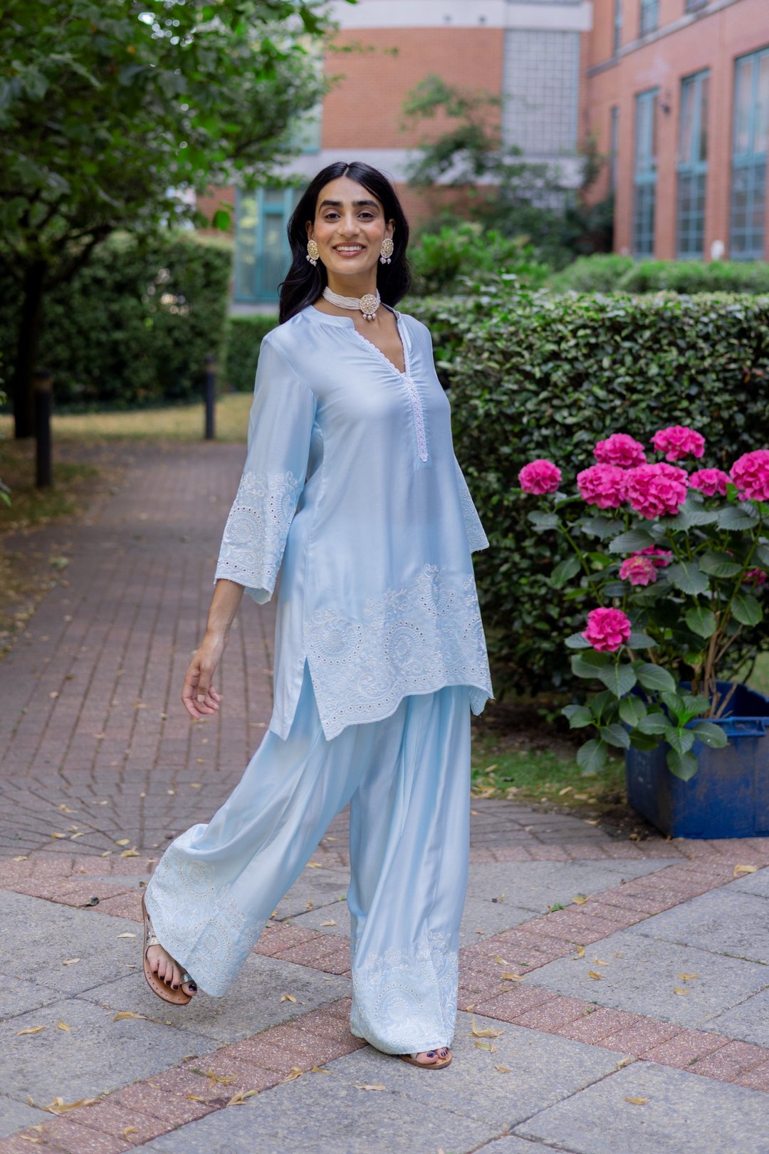 Light Blue Embroidered Farshi Salwar Set