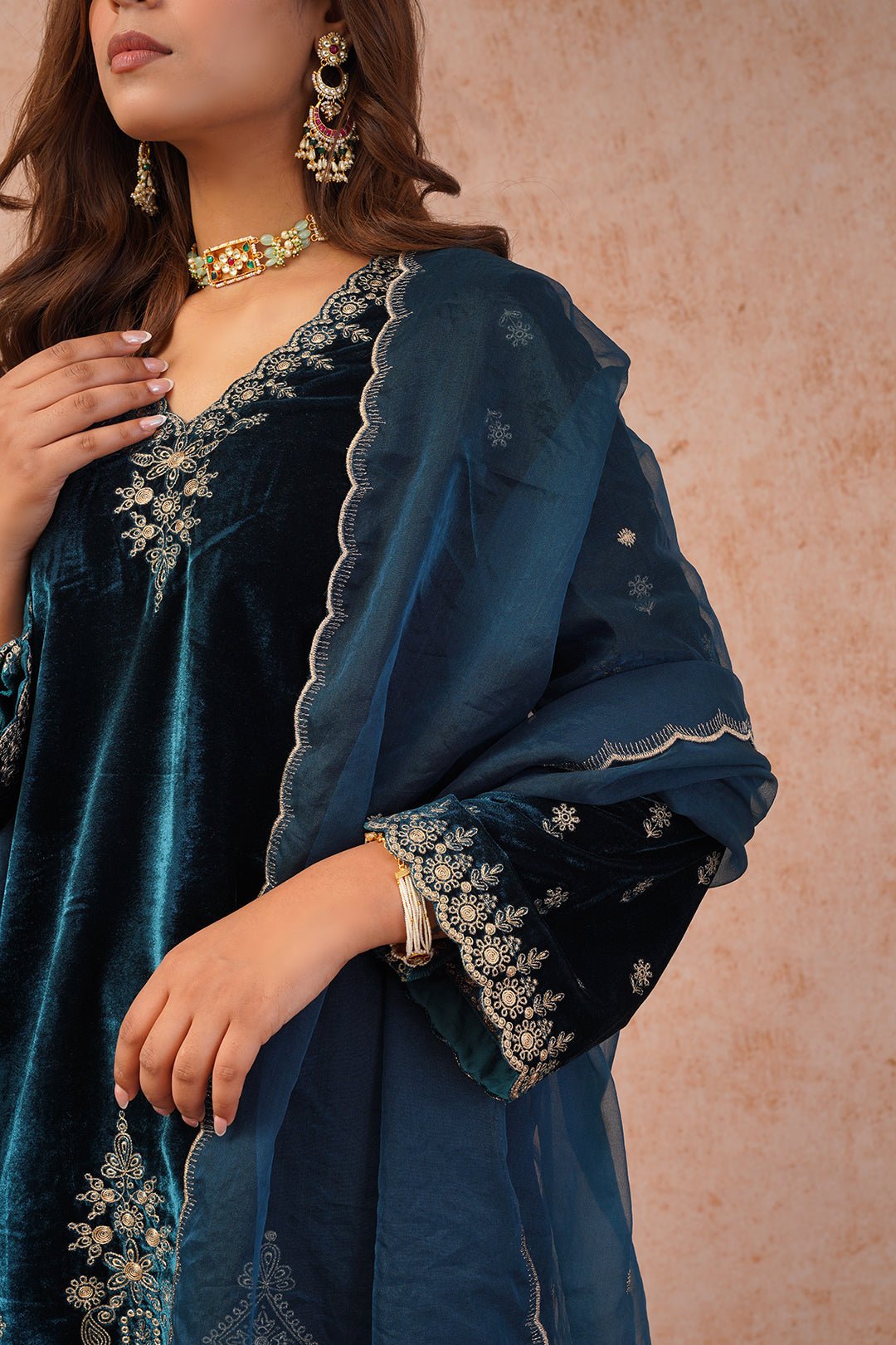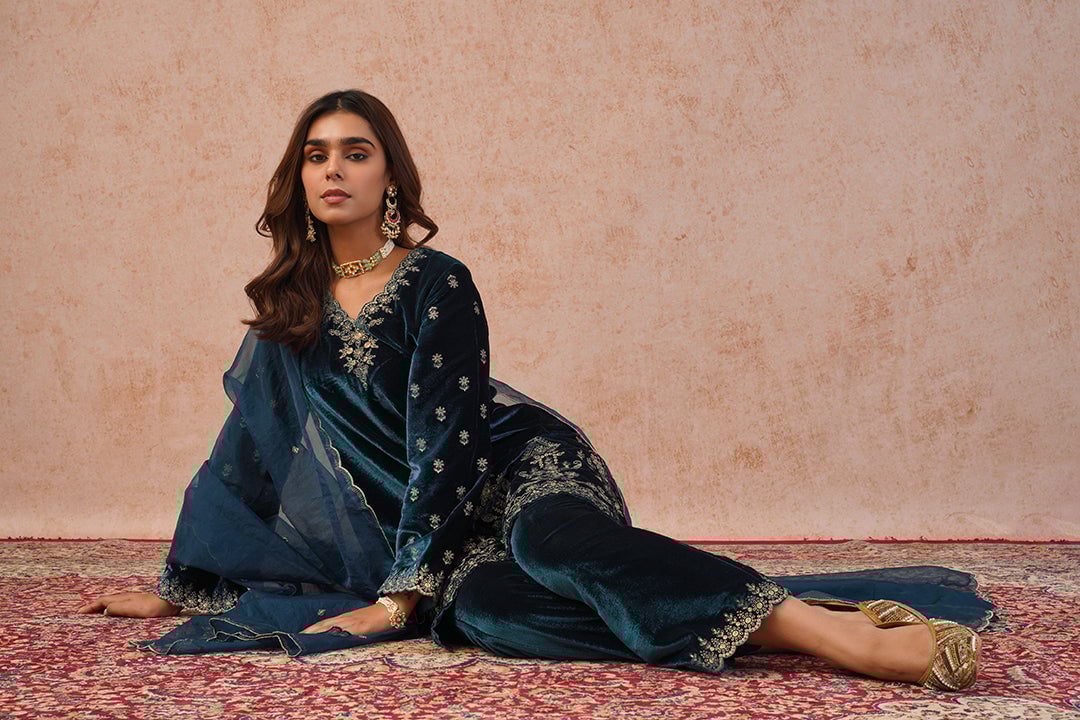 Teal Blue Velvet Embroidered Suit