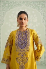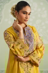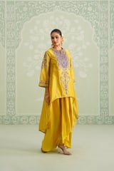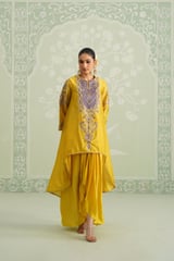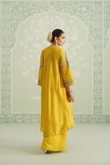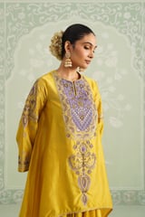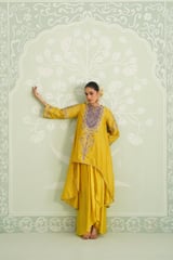 Yellow Embroidered Yoke Kurta Set with Flowy Bottom
