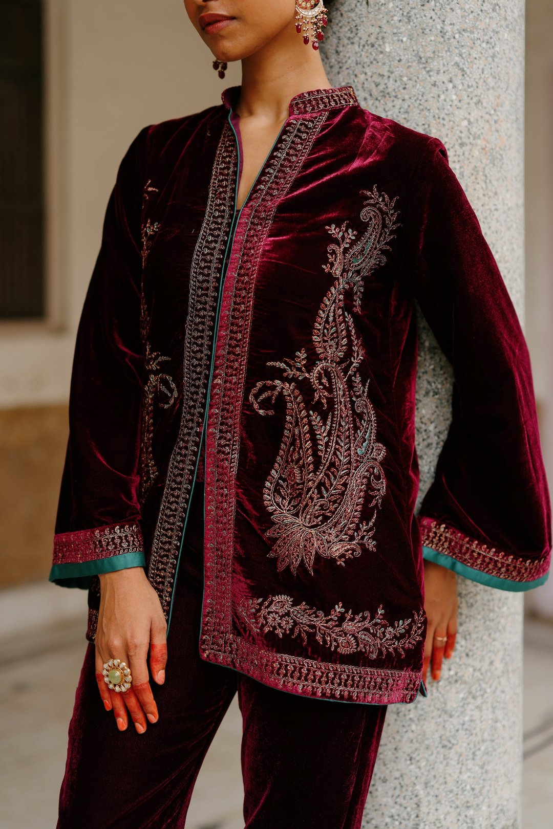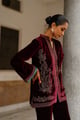 Parv Wine Embroidered Velvet Paisley Co-Ord Set