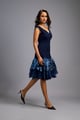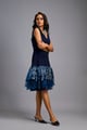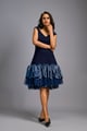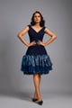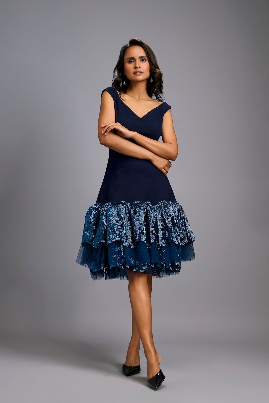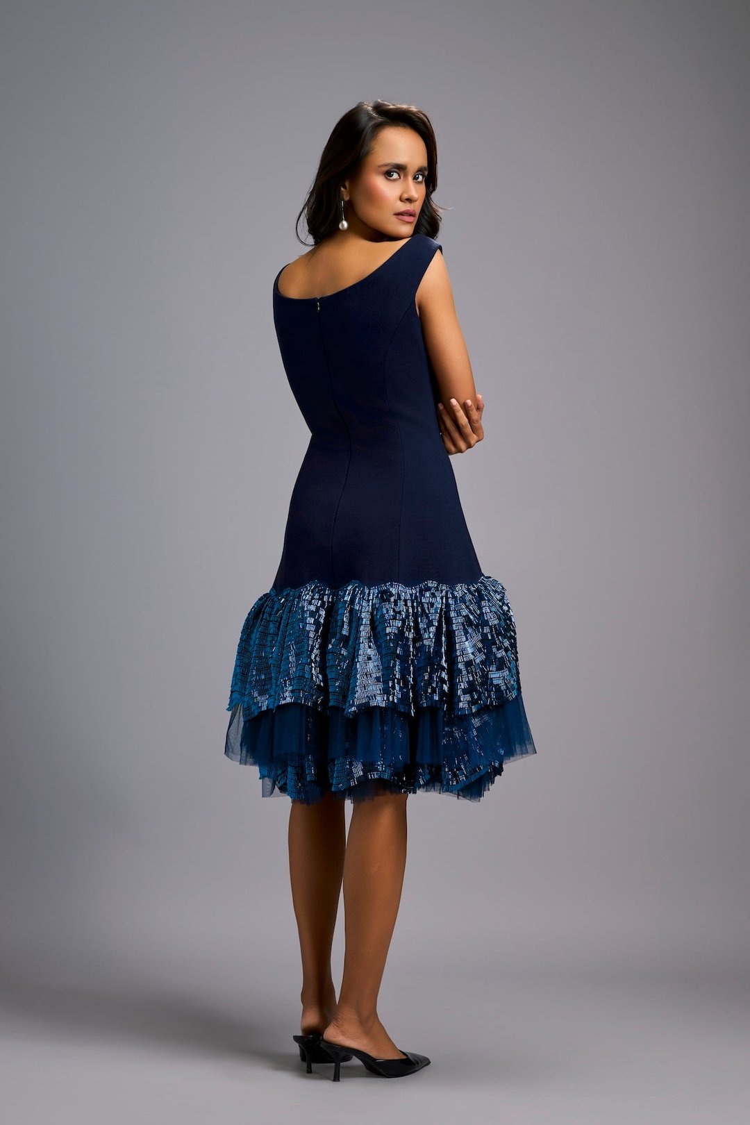 Off-Shoulder Navy Blue Dress with Shimmer Ruffles