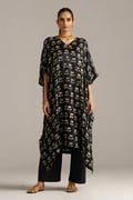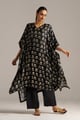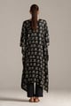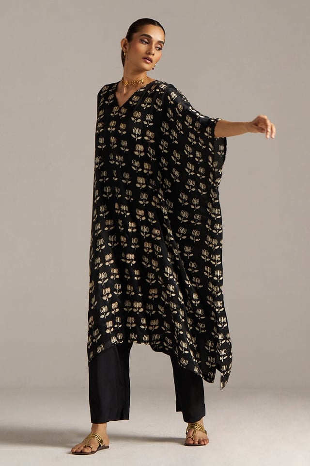 Black Lotus Print Gaji Silk Festive Kaftaan Set (Co-Ord Set)