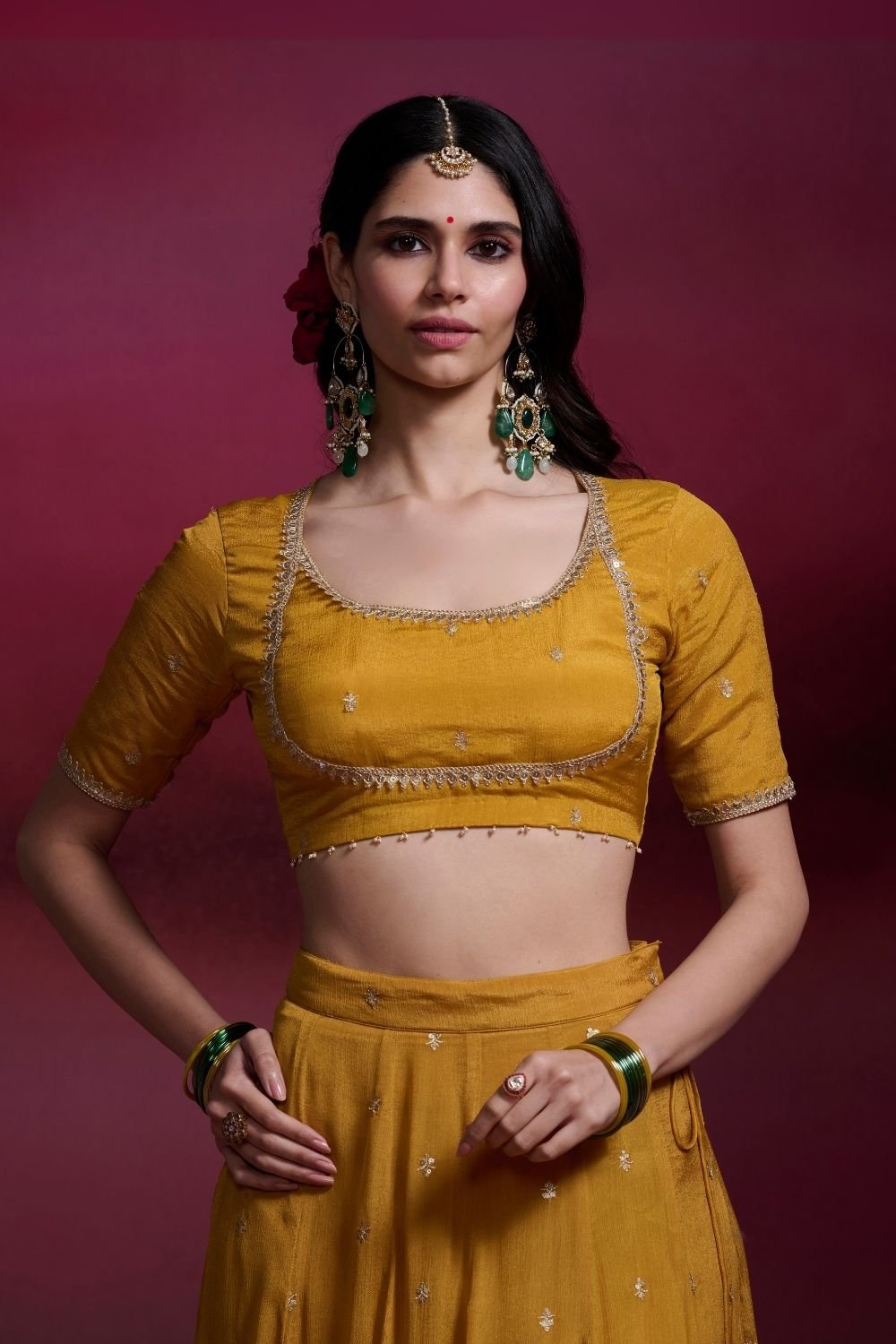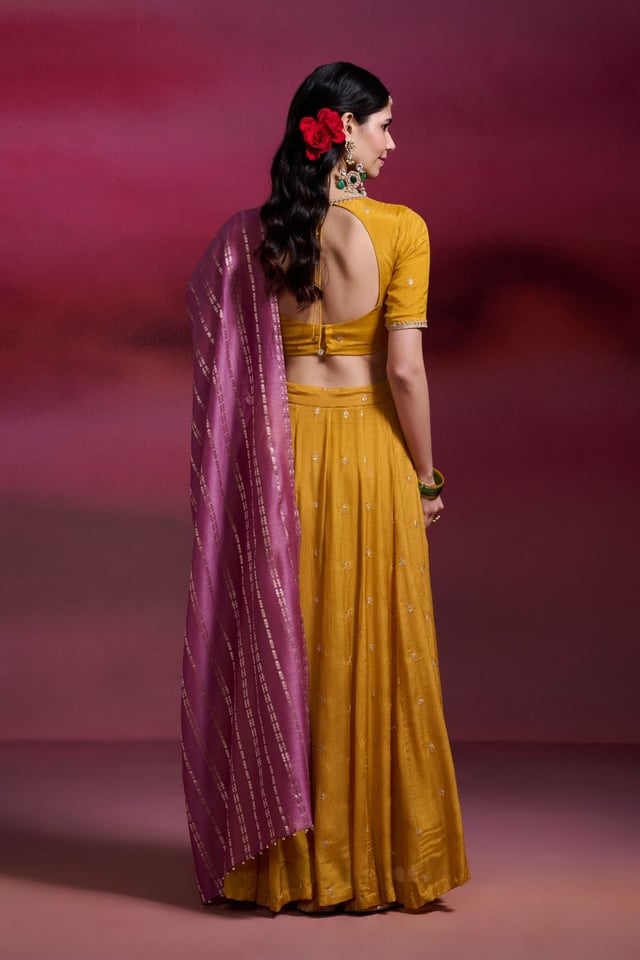 Kalindi Mustard Embroidered Viscose Lehenga Set