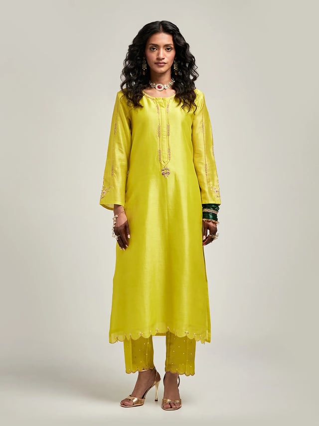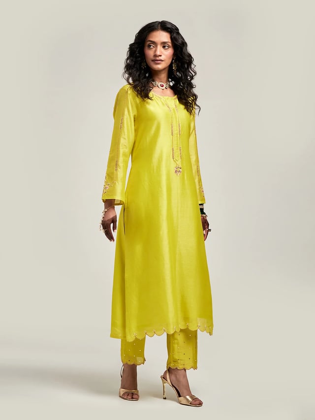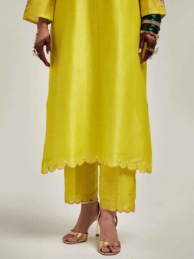 Embroidered Kurta with Scalloped Hem and Pant