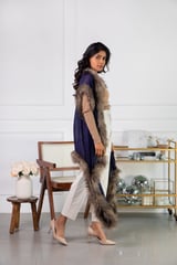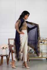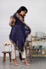 Ink Blue Wool Cape with Faux Fur Trim