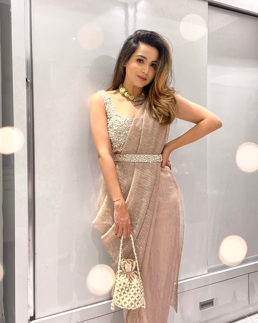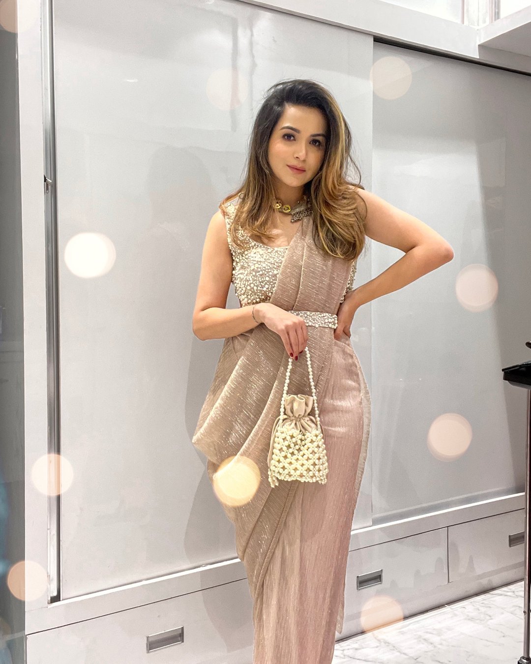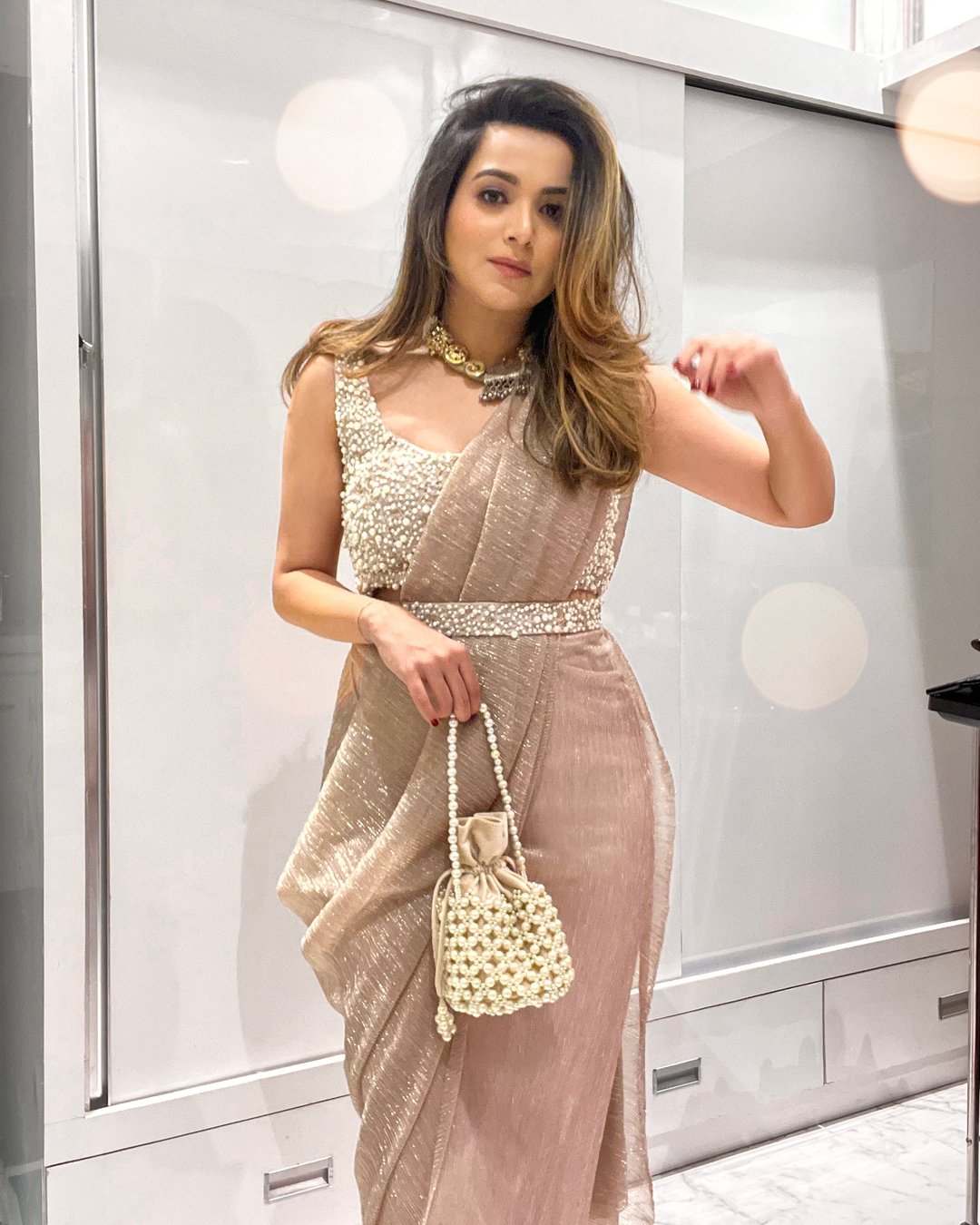 Rose Gold Pearl Saree