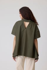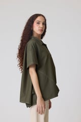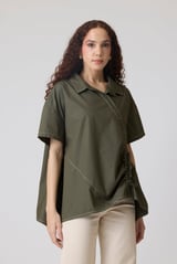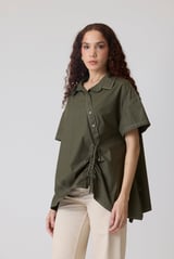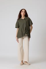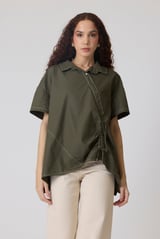 Military Green Asymmetric Button-Front Cotton Poplin Shirt