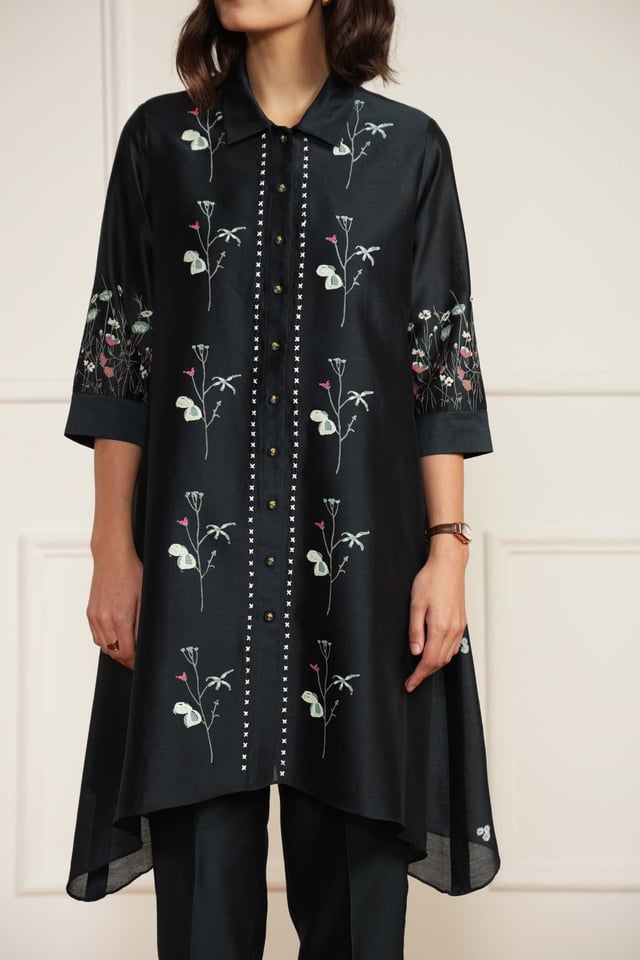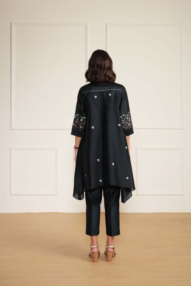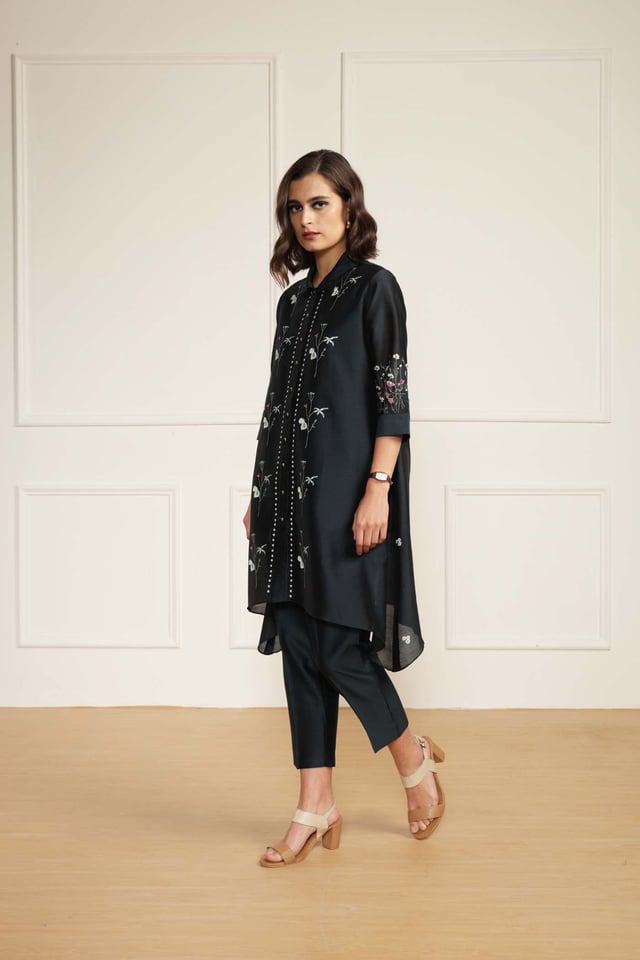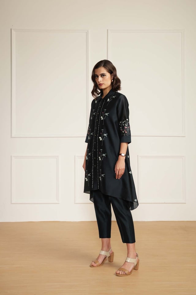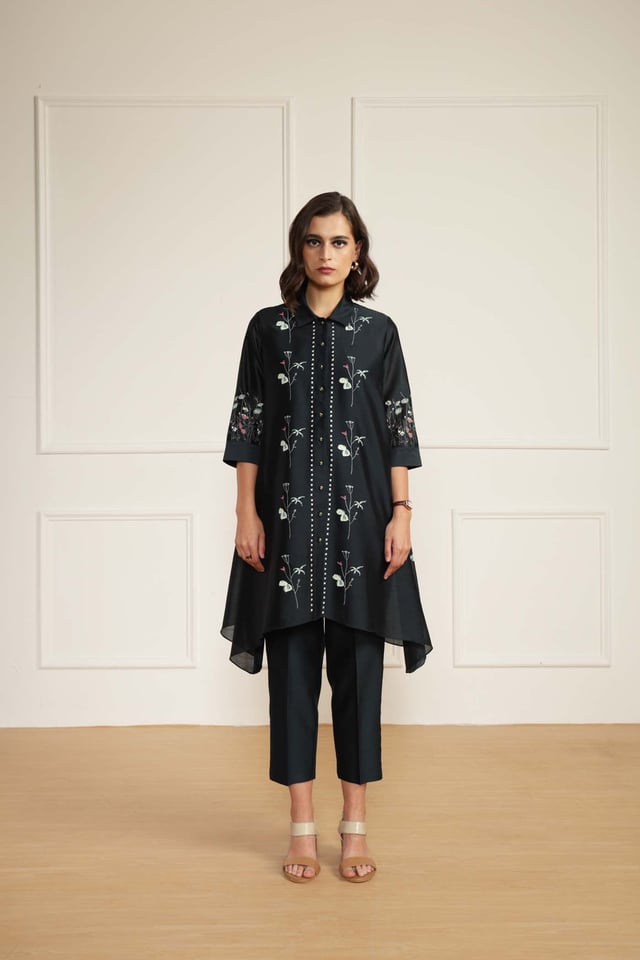 Indigo Silk Chanderi Shirt with Embroidery and Silk Chanderi Pants