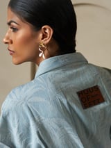 Indigo Jacquard Denim A-Line Shirt Dress