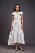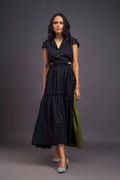 Lapel Collar Long Dress with Side Cutouts