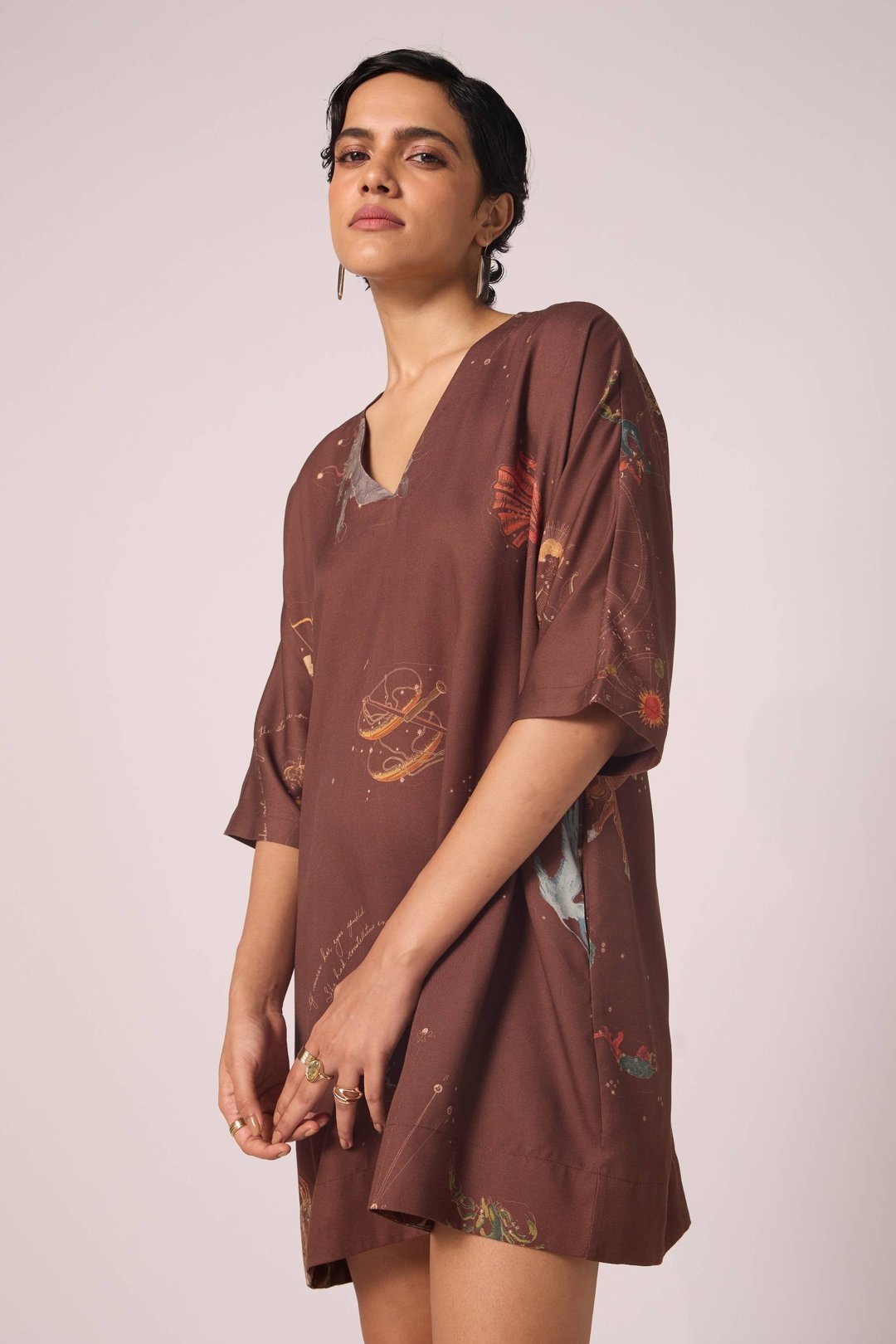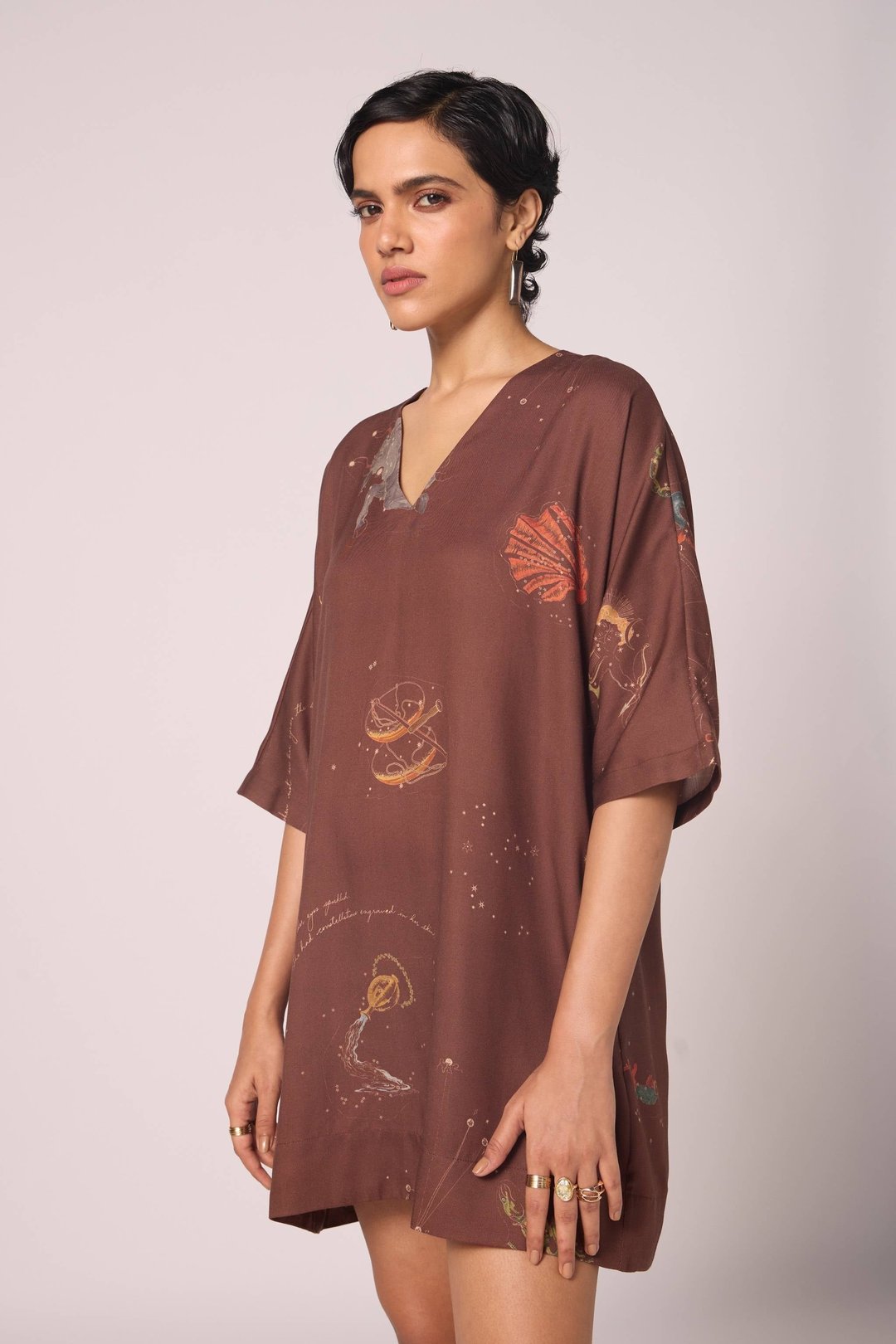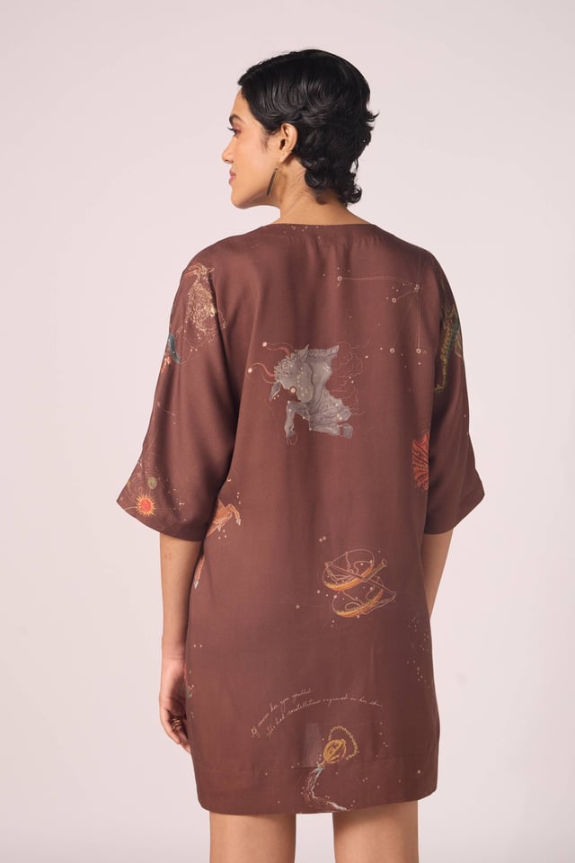 Stad Brown Zodiac Print Shift Dress