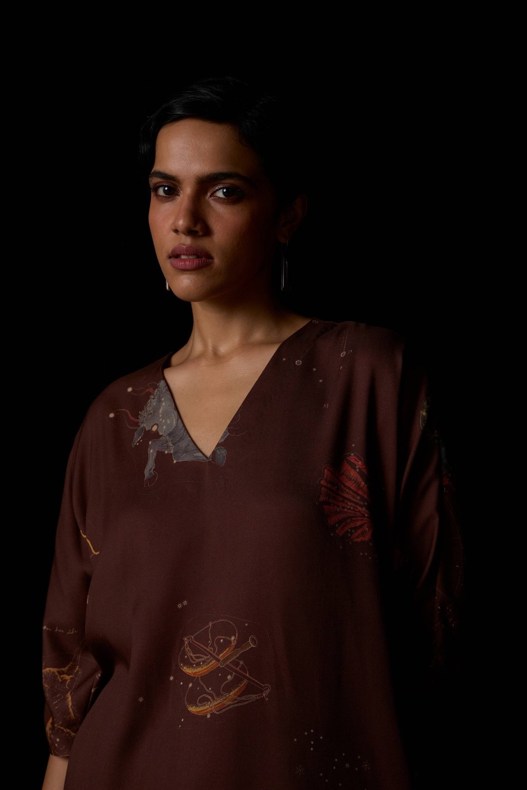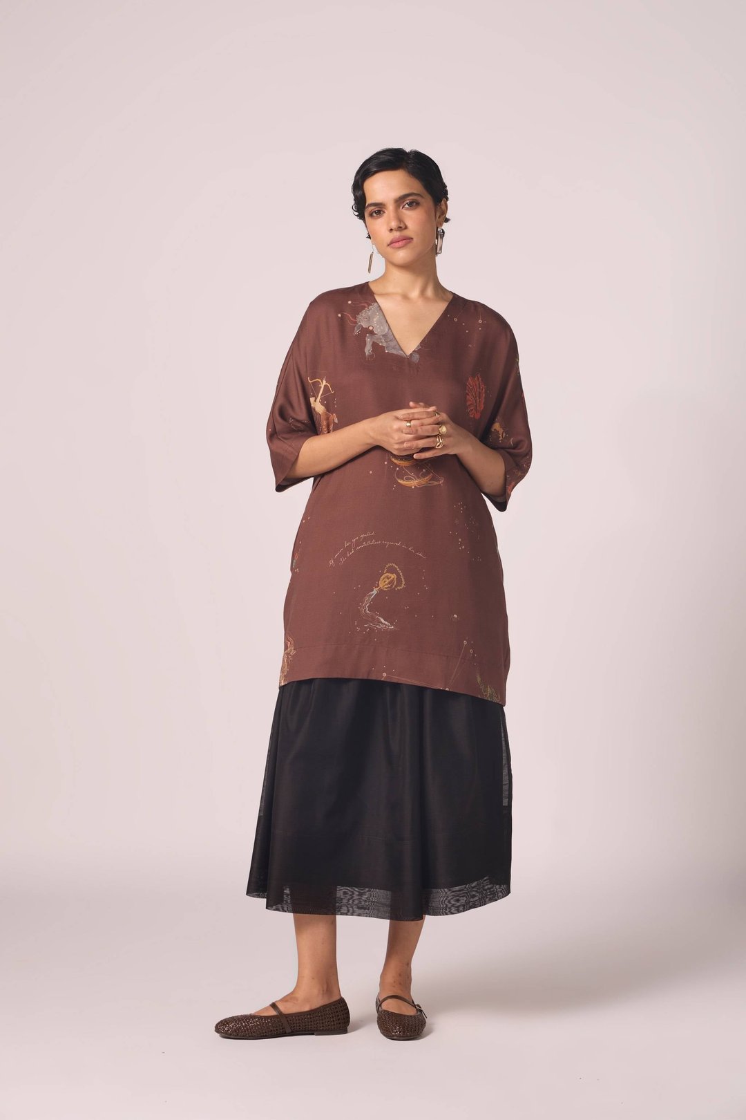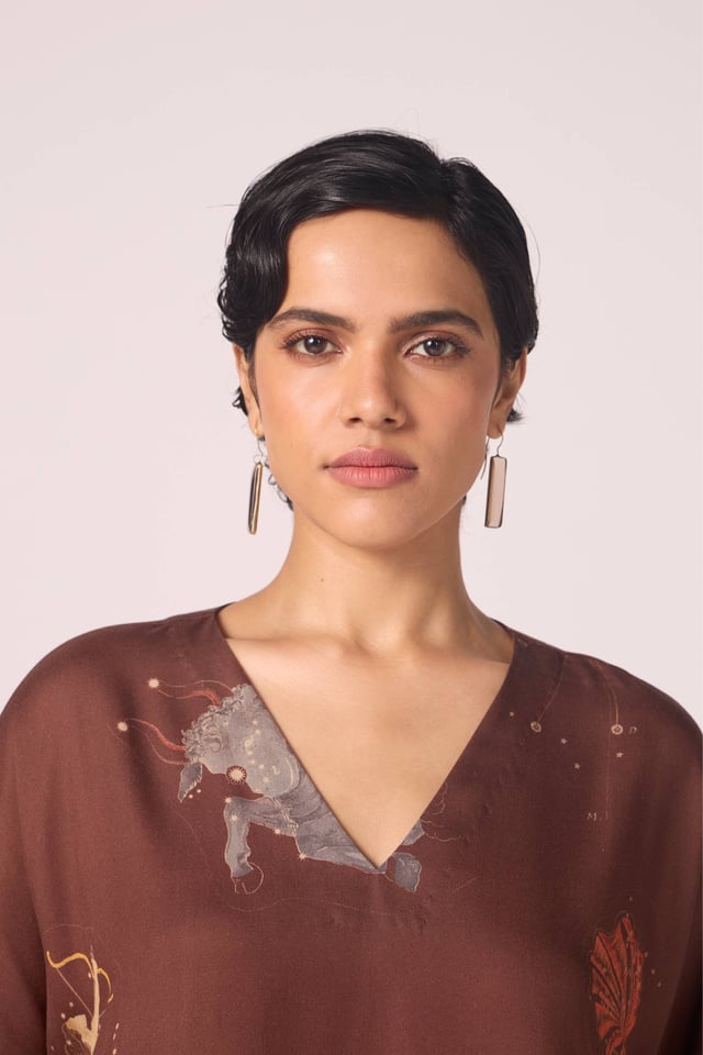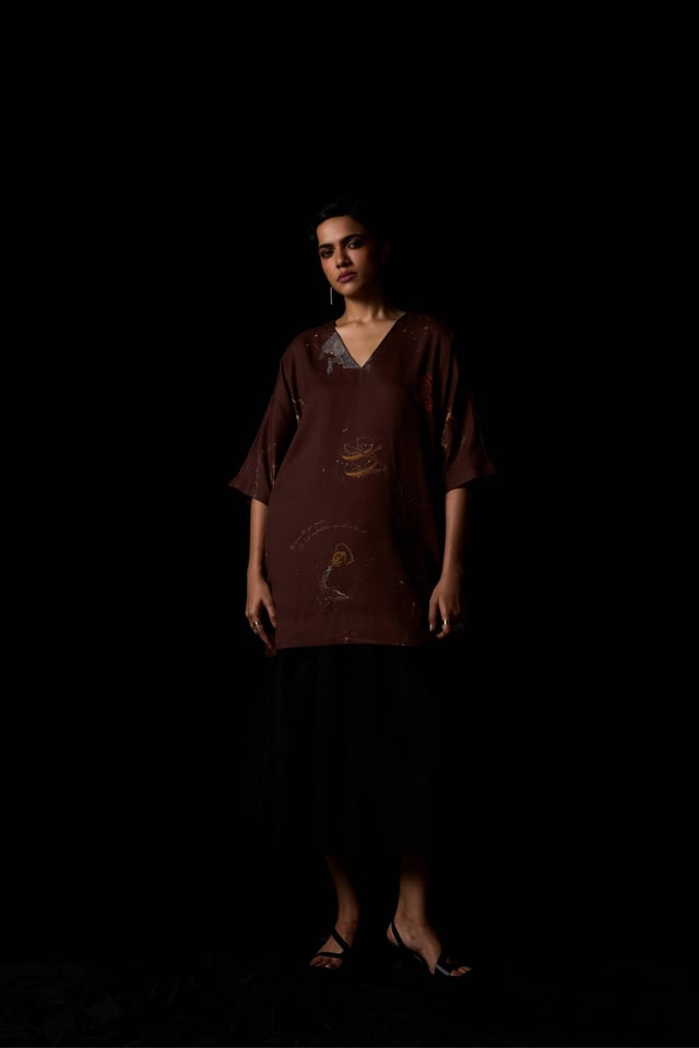 Stad Brown Zodiac Print Shift Dress