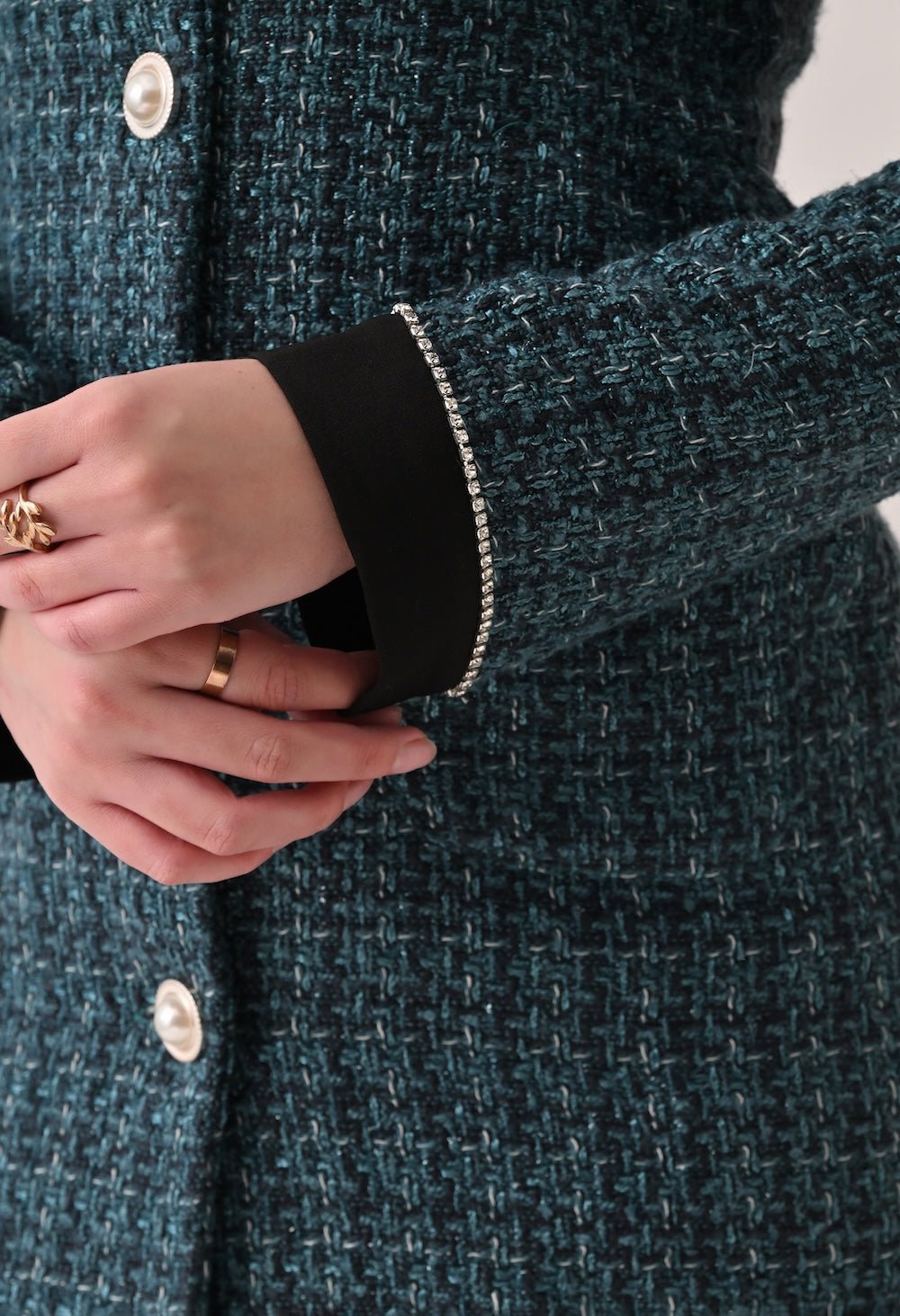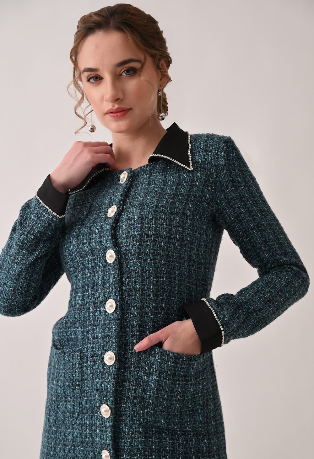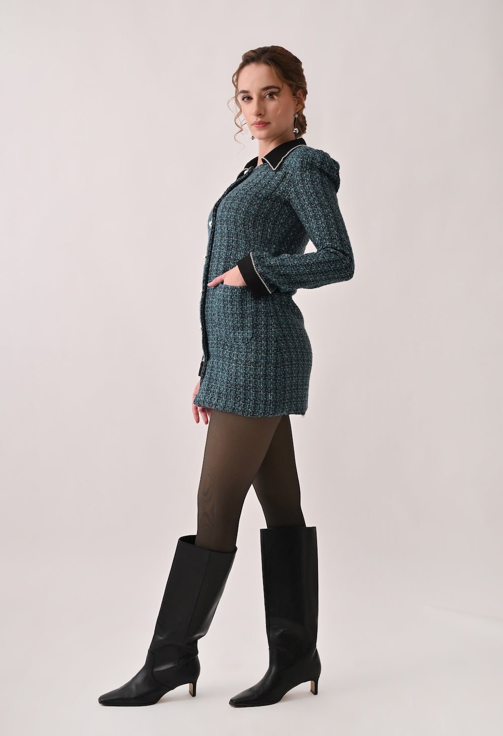 Tweed Blazer Dress with Contrasting Black Collar and Cuffs