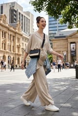 Taupe Draped Poncho Top and Bell Bottom Co-ord Set