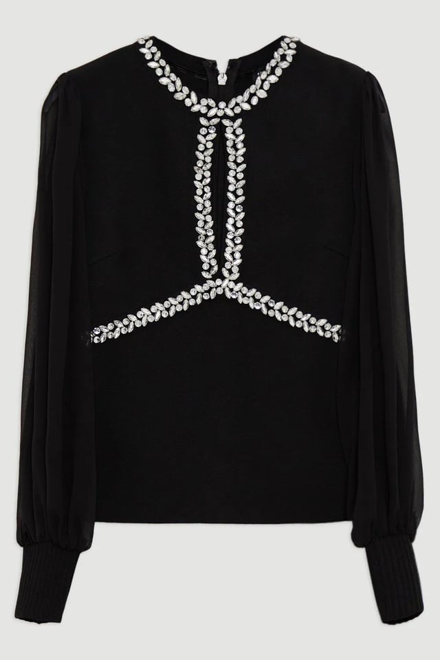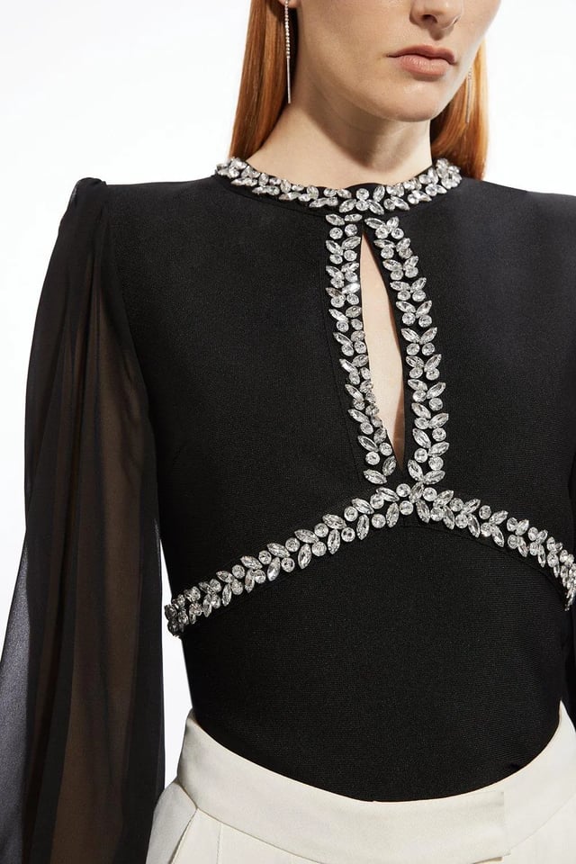 Bandage Embellished and Chiffon Sleeve Figure Form Knit Top