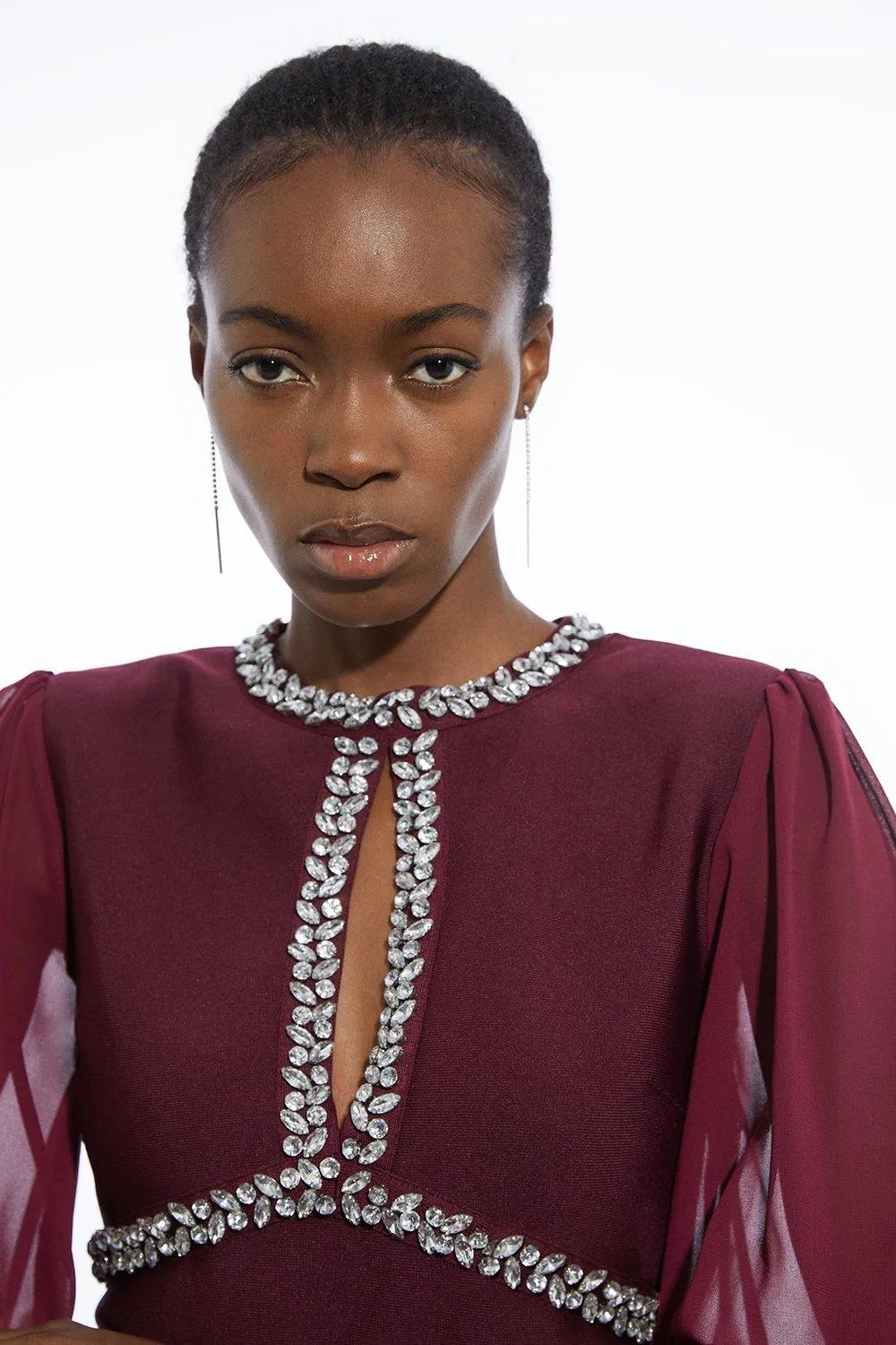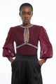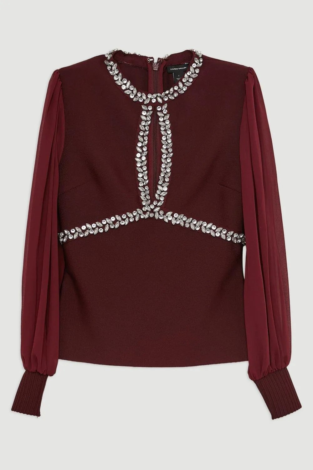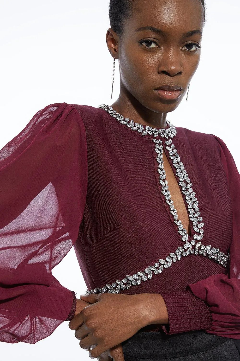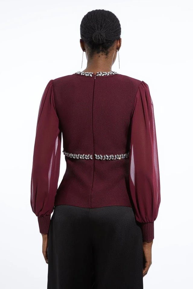 Bandage Embellished and Chiffon Sleeve Figure Form Knit Top