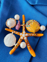 Starfish Shell Pearly Sea Brooch