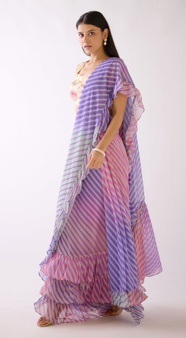 Pink Abstract Print Saree
