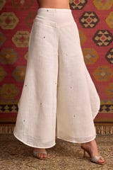 Off White Linen Palazzo Trousers with Wing Hem