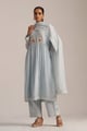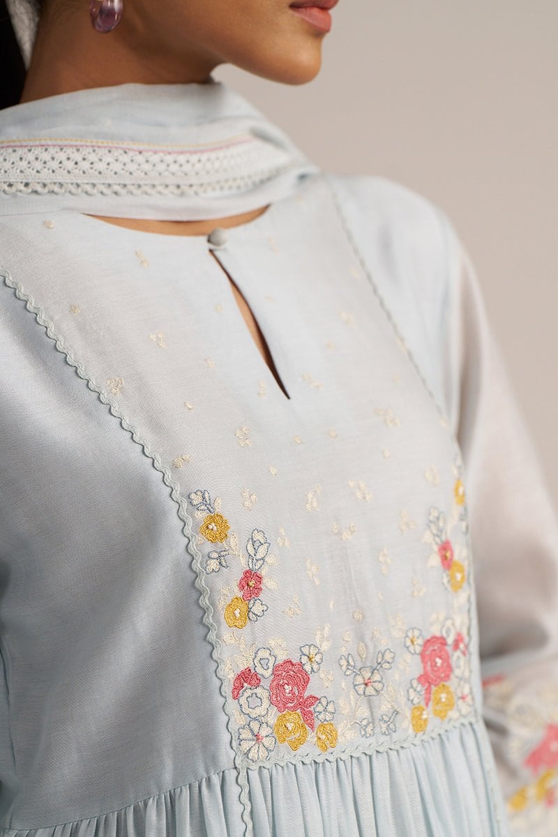 Chalk Blue Mal Chanderi Embroidered Kurta Set