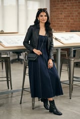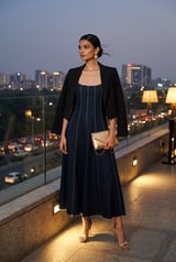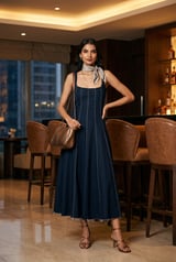Blue Denim Square-Neck Panelled Midi Dress